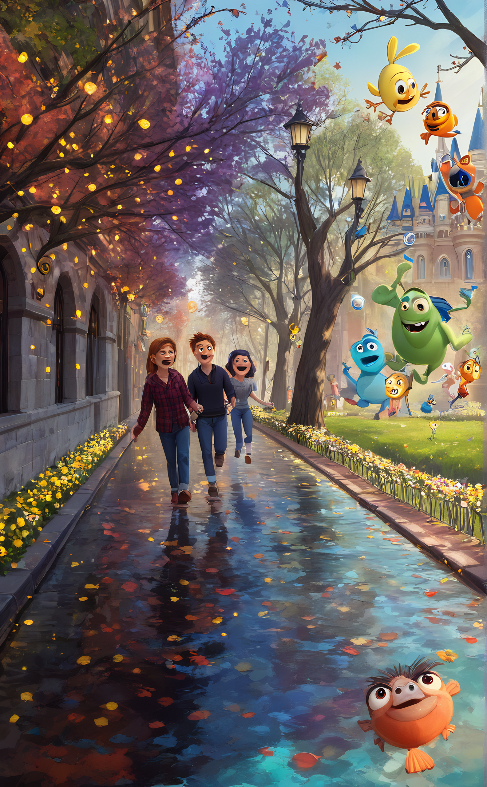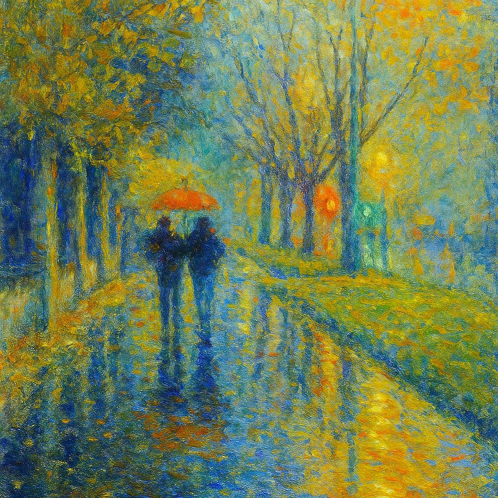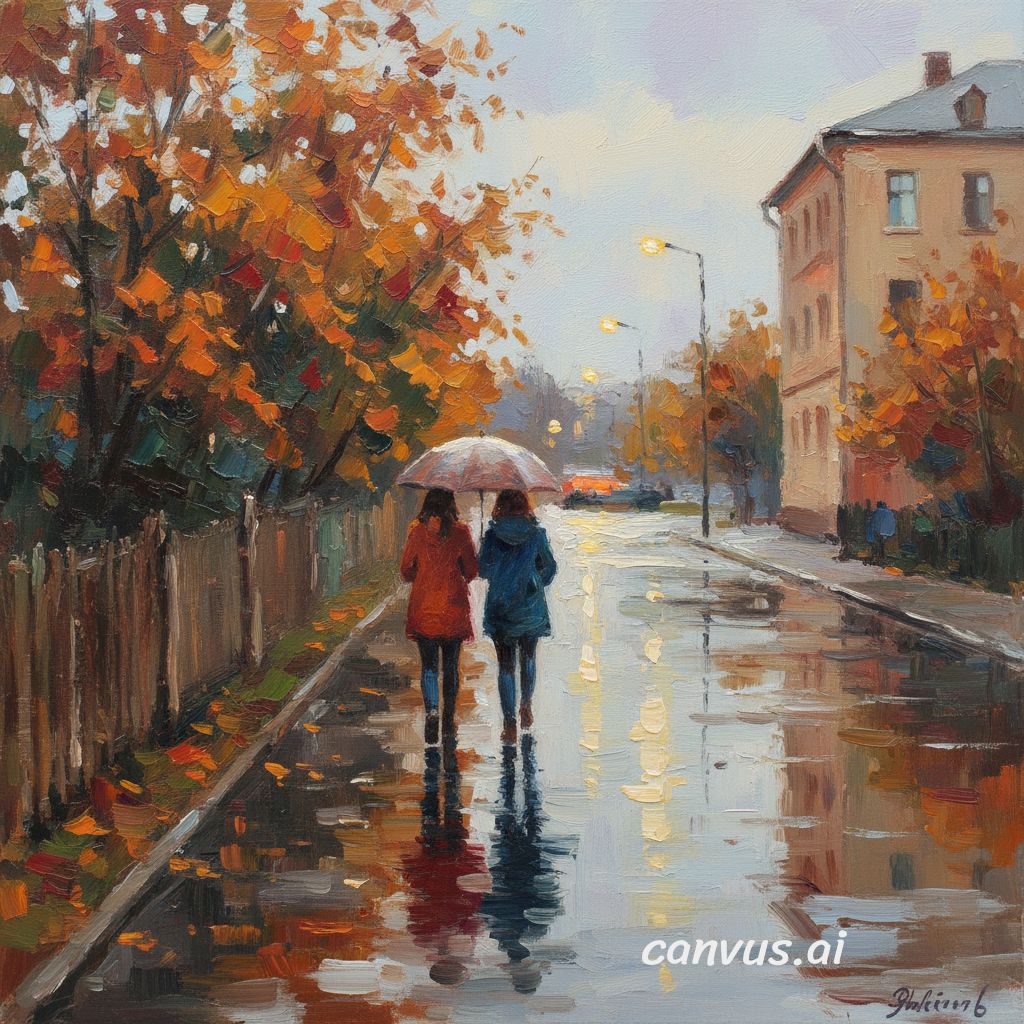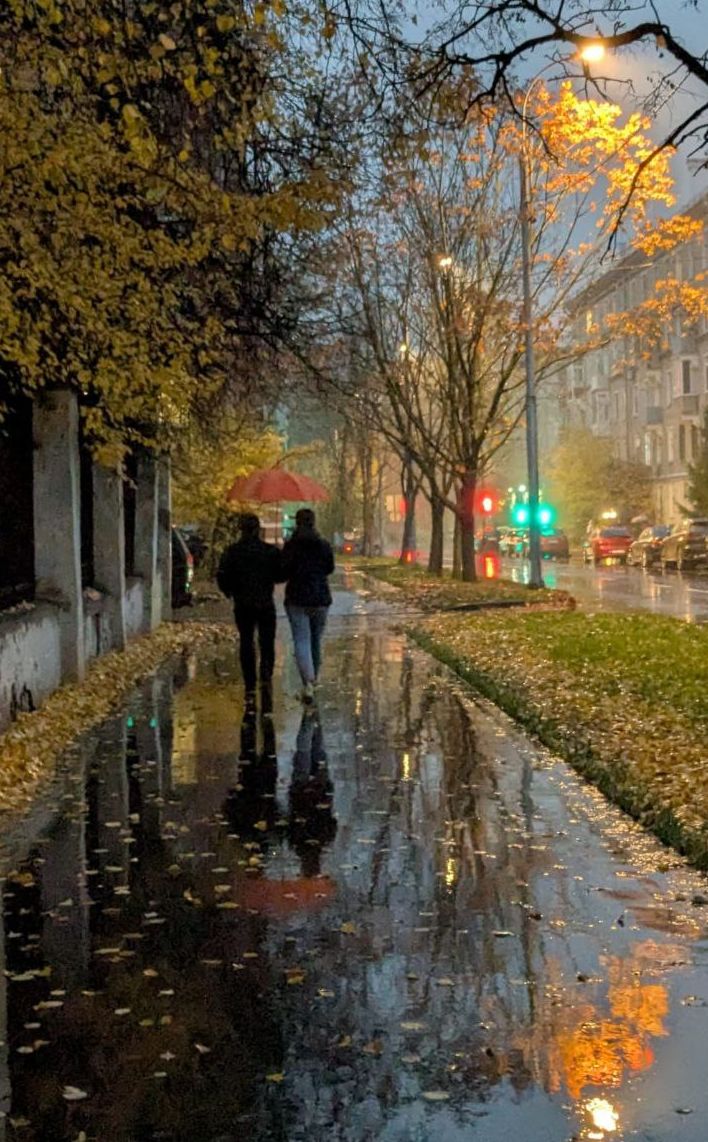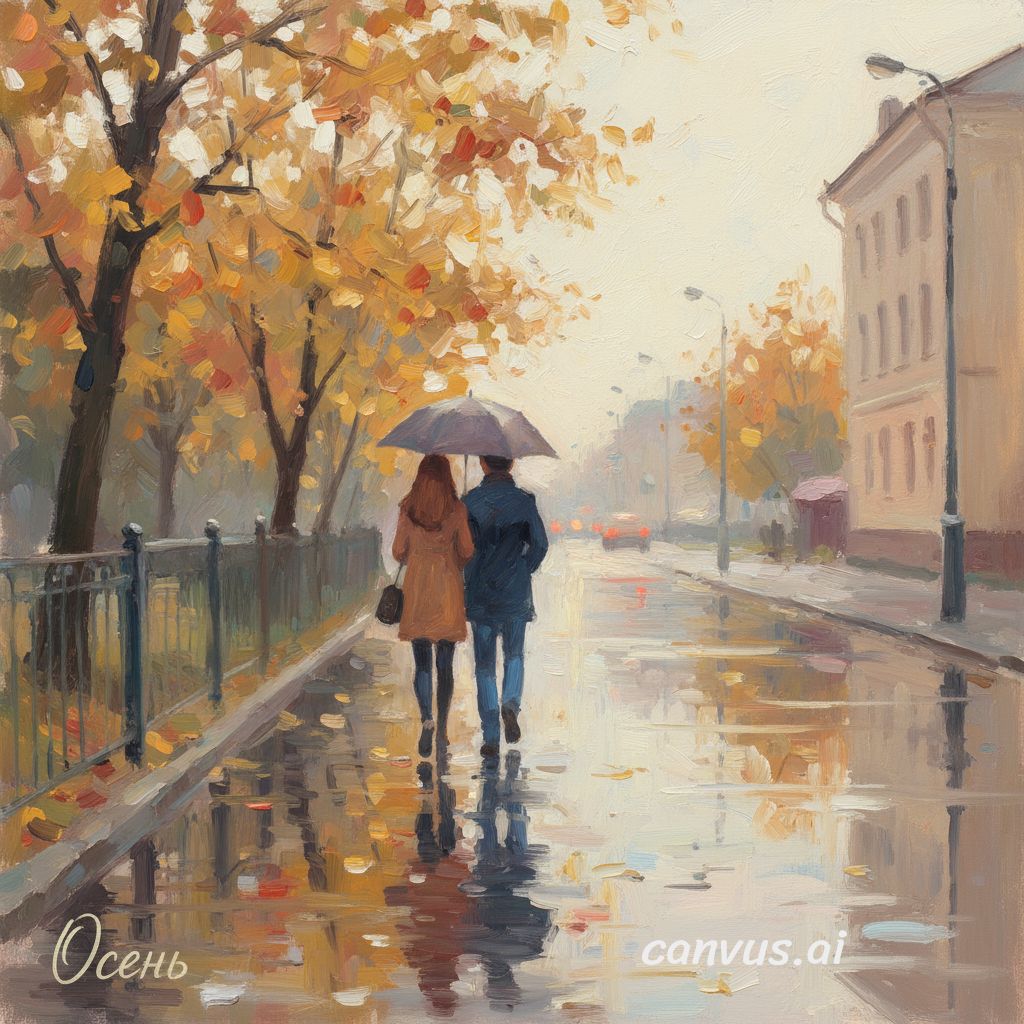 Фото Ю.К. и фото, сгенерированные из нее ИИ. Генерация по описанию: "Осень. Пара молодых людей идут по тратуару под зонтиком, по левой стороне улицы. Они удаляются. На асльфльте отражаются огни фонарей. Слева забор, за забором деревья, Справа улицы дом." с помощью canvus.ai и robotext.io Л.П. в FB от В.К. Ю.Д. о мехмате Ландшафтный парк Митино |