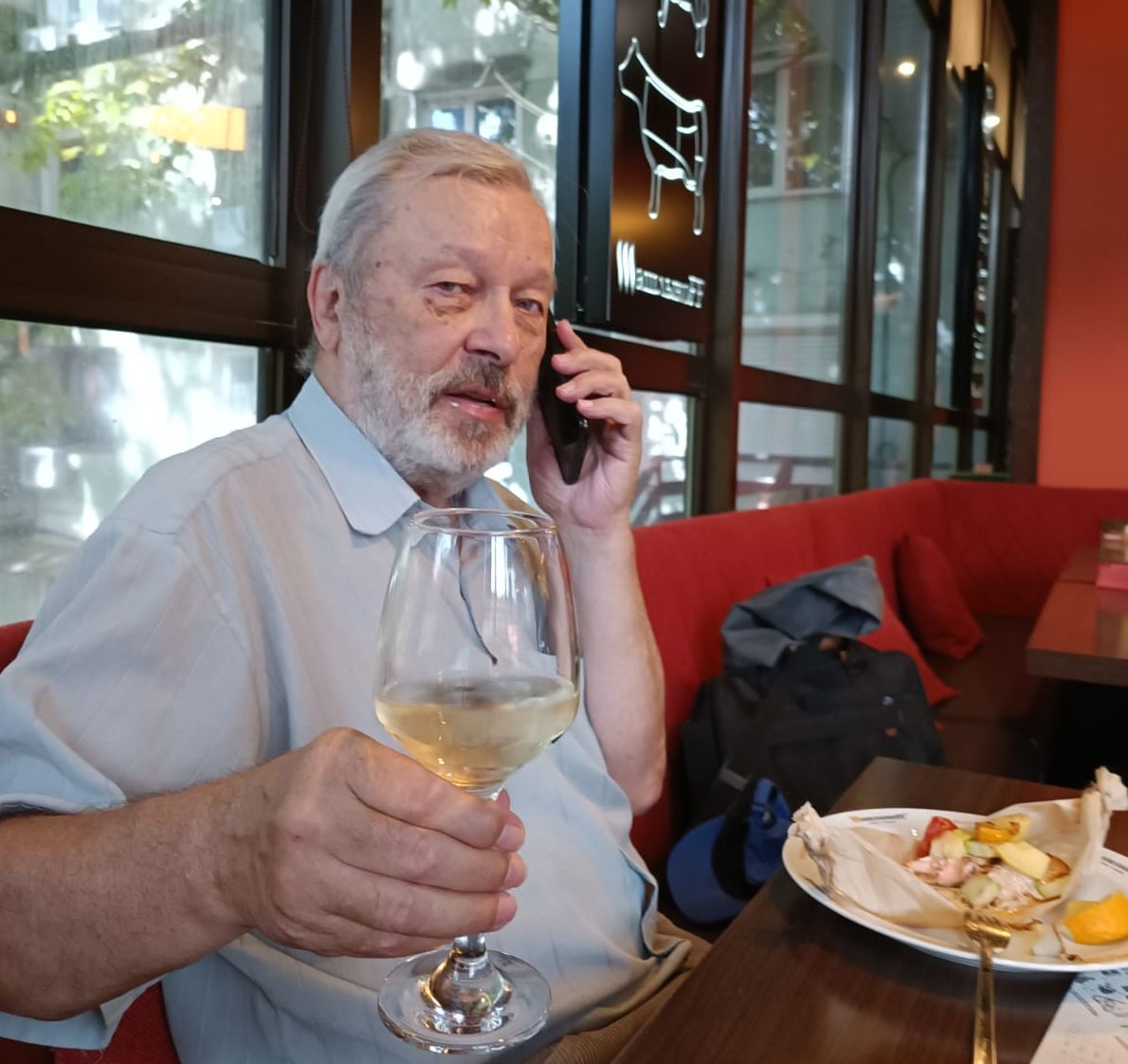 Именно во время застолья мы с Наташей сидели в баре Симферополя и поздравили его онлайн.